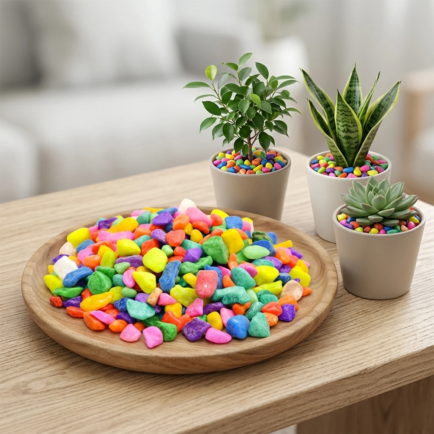 Multicolor decorative pebbles are one of the easiest ways to upgrade the look of your plants instantly. They not only improve aesthetics but also provide functional benefits like moisture control and soil protection.